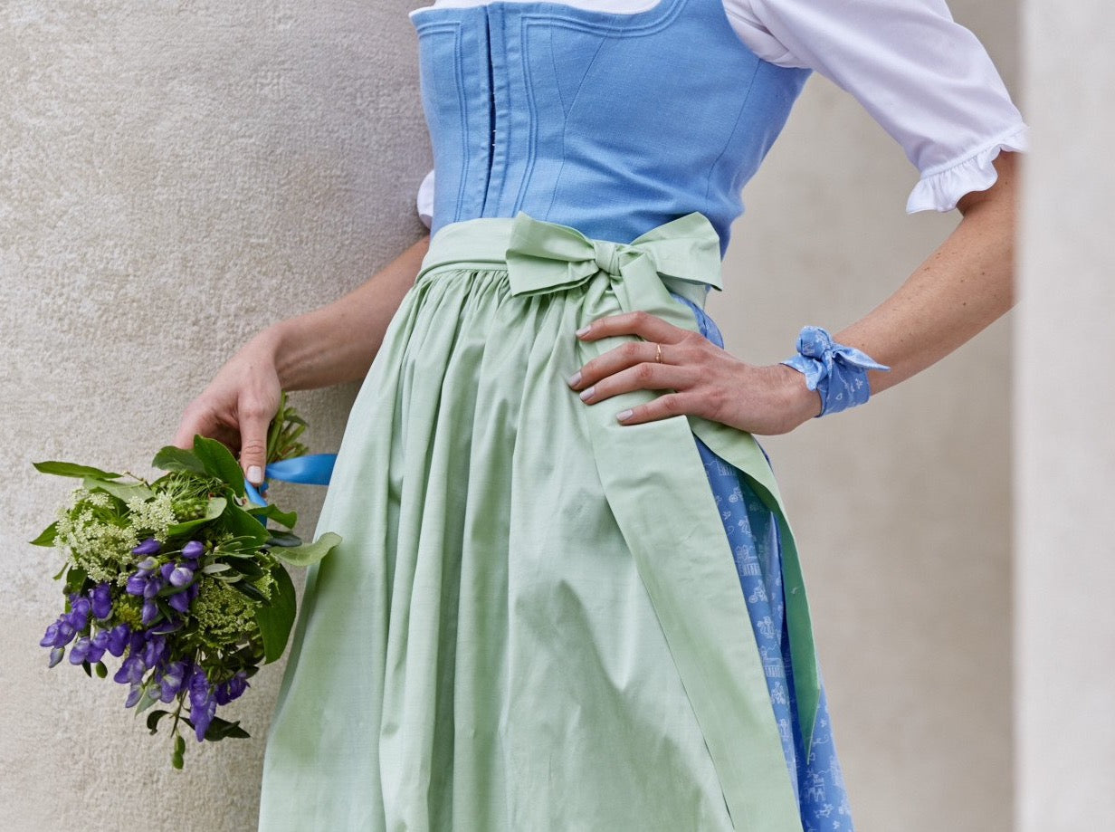 Die Seidenschürze wird in reiner Handarbeit hergestellt. Sie ist von Hand gezogen und hat durch die Seidenart eine besonders schöne Form und Halt. Im Schüzenband ist reichlich Seide verarbeitet, sodass sich eine schöne, lange Schleife daraus binden lässt.